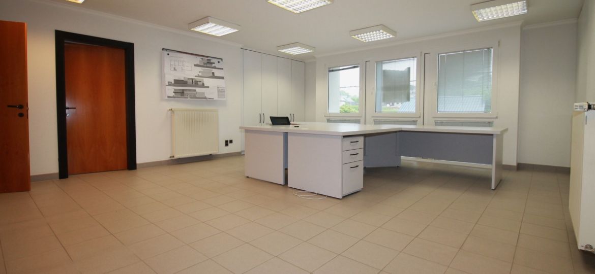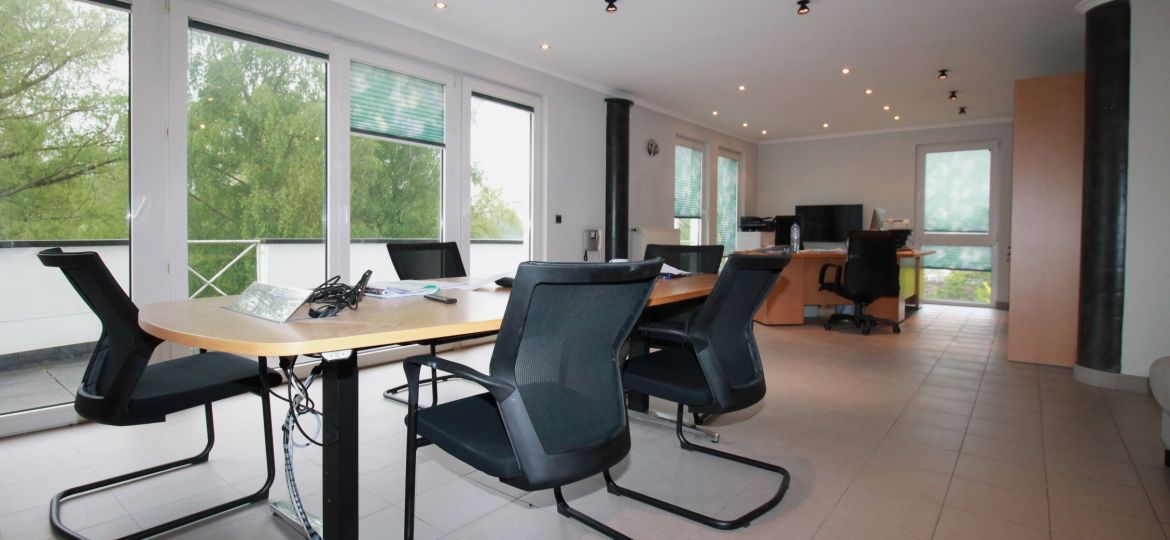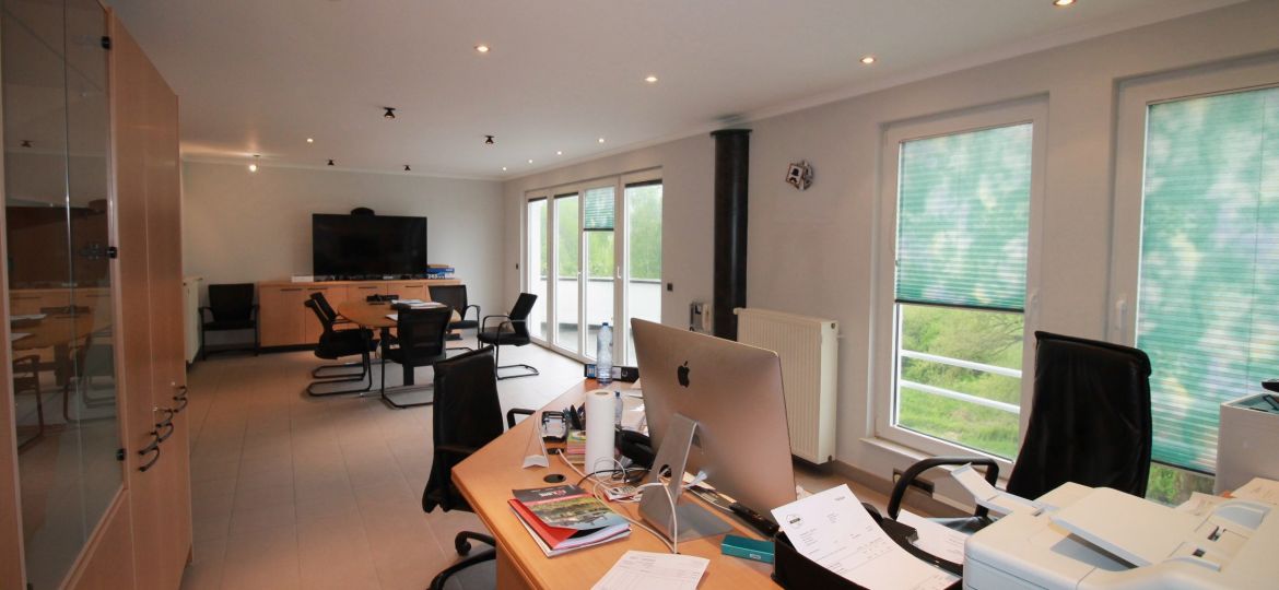 Cet espace de bureau polyvalent au premier étage couvre environ 200 m² et est en excellent état. L’espace comprend une zone d’accueil (réception), cinq bureaux, une cuisine équipée, un WC et un débarras. Trois places de stationnement extérieures propres, deux caves et deux balcons complètent l’offre.